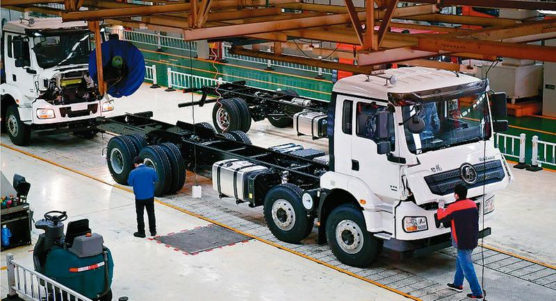 虽然新冠肺炎疫情带来了前所未有的冲击,但在抗击疫情的严峻斗争中,西安贯彻新发展理念,用好系列发展机遇的“窗口期”,全市经济运行经受住了疫情考验。以陕汽为代表的大型国有企业,正是西安这种向好趋势的典型代表,也是西安做实做强做优实体经济,推动经济高质量发展的生动实践。图为工人在总装配厂重卡总装线上工作。