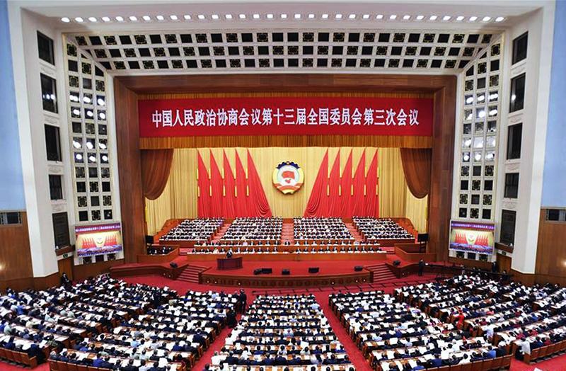 大会首先审议通过了政协第十三届全国委员会第三次会议议程。