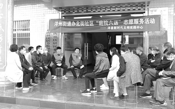洋县新时代文明实践中心创新策划以“送思想、送政策、送文化、送法律、送技术、送服务”为内容的“庭院六送”志愿服务项目,根据群众需求,制作了“庭院六送”理论宣讲菜单,在文明实践微信群内进行发布,引导各文明实践所、站线上点单,志愿者们线下服务,走在打通宣传群众、引导群众、教育群众、服务群众的“最后一公里”上,真正让党的理论政策“飞”入寻常百姓家。