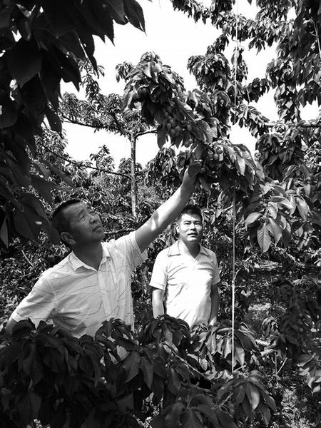 初夏暖阳金光闪烁,千亩樱桃林碧绿葱郁,点点红珠点缀其间,似无数晶莹闪烁的红玛瑙。看着整个村子樱桃园里村民们采摘成熟了的樱桃忙碌的身影,村党支部书记尹满成高兴地说:“红樱桃让咱乡亲过上了红火日子”。
