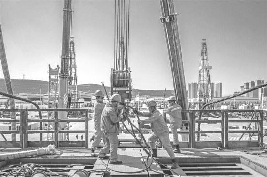 经济要回暖,外贸不能凉。陕西积极应对、攻坚克难,打好政策“组合拳”,稳住外贸基本盘,推动全省外贸高质量发展。图为近日在宝鸡石油机械有限责任公司钻机试验井场,工人正在安装石油钻机。