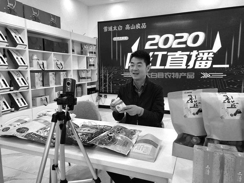 近日,太白县天绿农业合作社负责人王明俊通过抖音直播平台,推销太白山货,带动经济发展,促进农民增收。