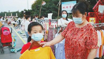 湖北大冶开放临时夜市促进消费回暖 下午6点半左右,天空还是十分亮堂,在湖北省大冶市的青铜文化广场过道两侧,已经有不少人摆出了地摊,放上日用百货、服装鞋帽、手工艺品、家用小电器等,开始叫卖。晚饭过后,散步的市民渐渐围拢过来,一个个摊位前热闹了起来。
