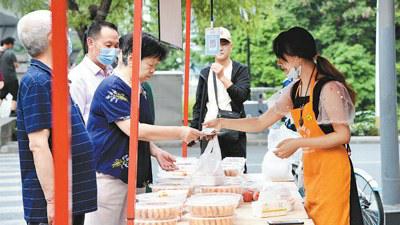 武侯区簇锦街道辖区内有大悦城和大合仓两个商圈。过去,游商小贩经常围着附近的地铁3号线太平园站违规经营,妨碍交通,扰乱秩序。疫情防控常态化后,武侯区城管局因势利导,在地铁口和商圈之间的太平园中三路边上规划摊区,设置20个共享摊位,发放给有摆摊需求的居民分时段经营。
