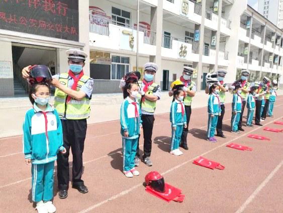 为进一步提升摩托车、电动自行车骑乘人员和汽车驾乘人员安全防护水平,引导广大驾乘人员规范使用安全头盔和安全带,有效保障驾乘人员人身安全,凤县公安局交管大队深化落实交管局《“一盔一带”安全守护行动方案》要求及市交警支队“一盔一带安全常在”文件精神,紧密结合凤县辖区实际,于5月22日联合凤县雅迪电动车专卖店在城区中心广场开展“一盔一带”安全守护行动专题宣传活动。民警走进辖区校园开展“一盔一带”快乐“六一”交通安全伴我行宣传活动。