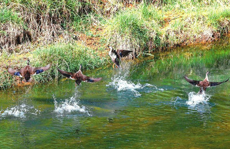 日前,在延安市宝塔区枣园街道邓家沟村附近的小河里,斑嘴野鸭时而翩翩起舞,时而嬉水觅食,引来过往群众驻足观看。近年来,随着延安市生态环境的不断改善,以及市民爱鸟护鸟意识的显著增强,众多候鸟频频光临城区河道,处处呈现出人与自然和谐共生的美好画面。