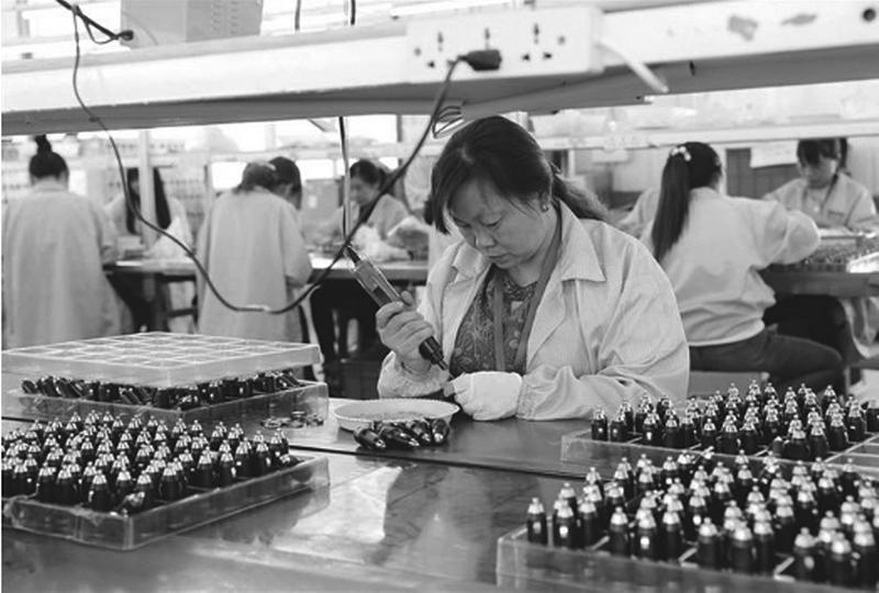 紫云南郡社区易地扶贫搬迁后续扶持项目位于汉阴县涧池镇,总投资2.5亿元,目前已完成投资1.4亿元,计划2021年全部建成。社区建成后,可安置搬迁群众734户2867人。通过创新推行易地扶贫搬迁后续扶持“138”模式,让搬迁群众就近就地就业,带动700户贫困群众实现稳定增收。图为群众在社区工厂里装配电子产品。