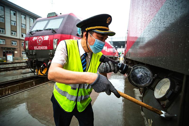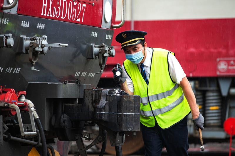 近日,陕西及周边大部地区普降中到大雨,中国铁路西安局集团有限公司西安机务段为了保证旅客平安出行,要求火车司机和各岗位作业人员牢记“安全第一”的原则,严格执行汛期作业标准,在操纵机车出库前认真做好各项检查试验,并加强运行途中的瞭望鸣笛,做好应急处置准备,精准控制速度、随时降速停车,严密确保雨天旅客列车运行安全。