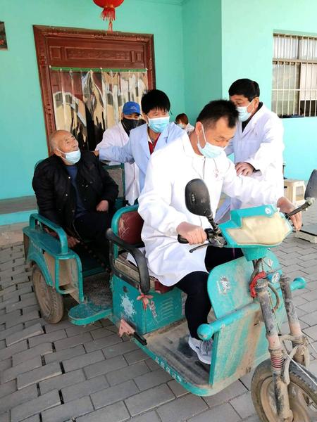 情系农村,服务百姓无怨无悔。2020年4月26日上午,兴平市西吴卫生院在该街道办来祁寨村卫生室免费为65岁以上老年人体检,有位80岁贫困户杨志超拄着拐杖步履蹒跚一点一点向村卫生室走来,村医杨海洋搀扶老人到体检现场,并亲自带领杨志超完成全部体检项目,体检完毕,杨海洋家里只有电摩,但是考虑到老人身体状况,坐电摩可能会坐不稳,特意借来一辆三轮车,亲自送杨志超老人回家,大家由衷的感叹到“他是我们学习的榜样,是扶贫路上最美的村医”。