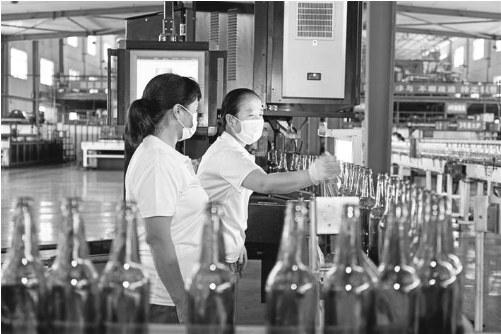 从“六稳”到“六保”,陕西省委非公和社会组织工委联系指导各地各级相关部门党组织,切实通过把组织优势转化为攻坚优势,助力企业精准有序复工复产。图为在宝鸡市育才玻璃制瓶有限公司一处流水生产线上,员工在检验瓶子质量。