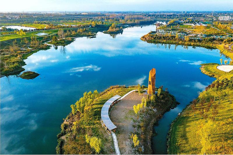 西安市今年计划完成107个项目已开工97个,剩余10个月底前开工。图为沣河两岸水草丰茂,风景美如画。