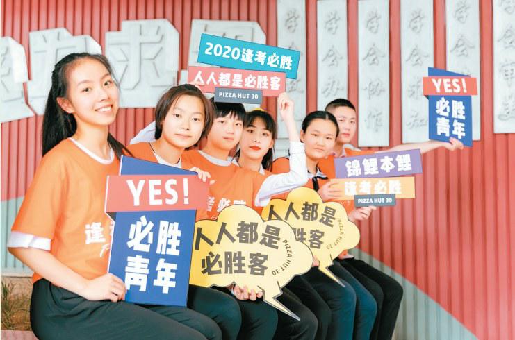2020是个特殊的年份,对于本届高三考生来说是一个新的挑战,更需要增强必胜的信心迎接高考,“逢考必胜”无疑是考生、家长和学校的共同心愿。今年,西安必胜客延续开展5年的“逢考必胜”活动,走入西安市铁一中学、西安市高级中学,送上比萨和祝福,为考前冲刺的学子们加油鼓劲,祝愿必胜青年们都能“逢考必胜”,成为考场乃至人生的“必胜客”。图为学子们为即将到来的高考加油鼓劲。
