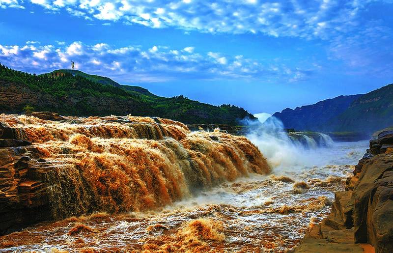 壶口瀑布今年首次出现黄色飞瀑景观