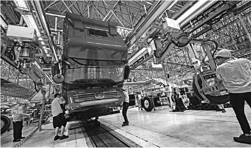 近日,工人在陕汽控股集团有限公司总装生产线上作业。上半年,该公司迎难而上,抓订单、促生产,累计产销汽车11.2万辆,同比增长5%;获得订单12.4万辆,同比增长15%,顺利完成时间任务双过半目标。