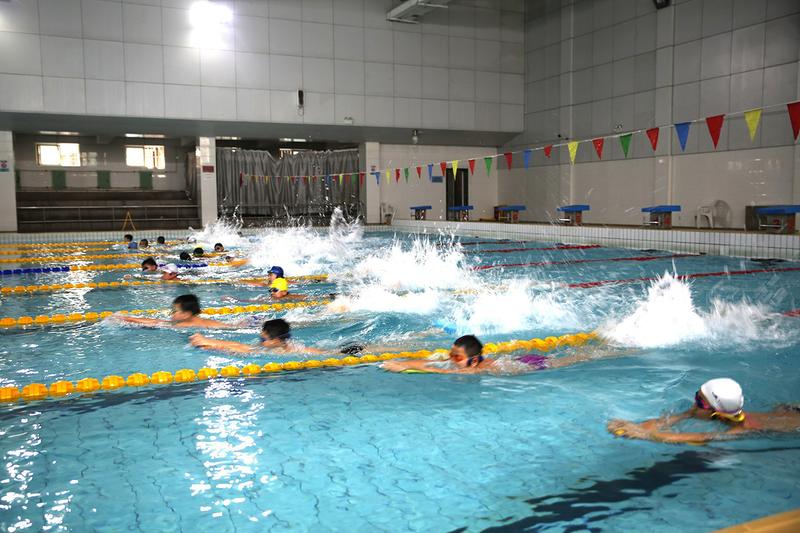 7月15日,在西安市游泳运动管理中心孩子们正在学习游泳。