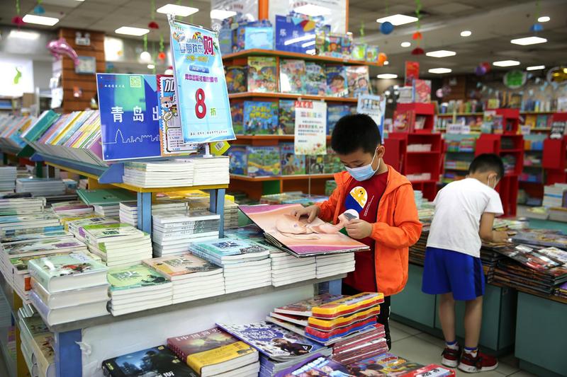 7月15日,在西安市新华书店一名小学生正在挑选自己喜欢的书籍。