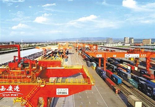 在西安港内,每天有10至12列中欧班列“长安号”从这里始发和到达。