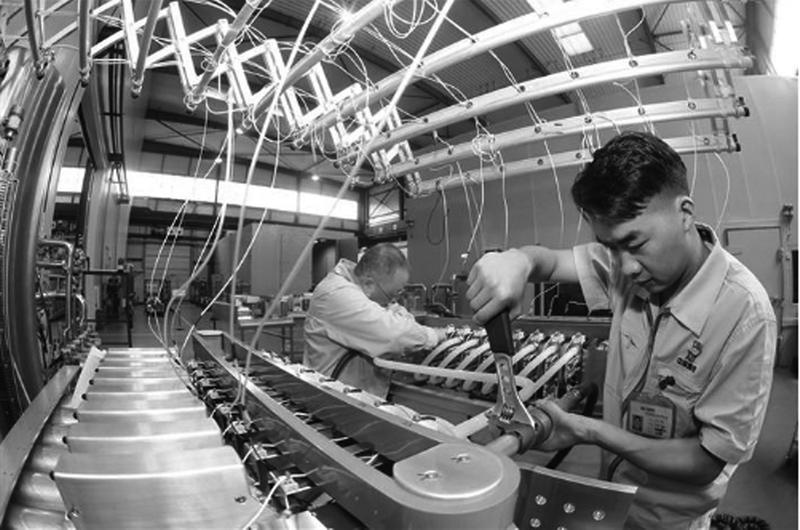中国西电集团所属西电电力系统上半年先后完成了“云贵互联通道工程”±500kV高坡等工作。截至6月底,该企业完成全年工作任务的60%。图为试验人员在给换流阀组件做例行试验。