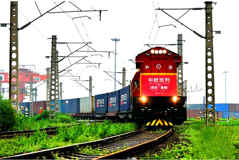 近日,满载着41车百货商品的中欧班列从西安市新筑车站开出,预计12天左右到达乌克兰首都基辅,这是西安至基辅的首趟中欧班列。