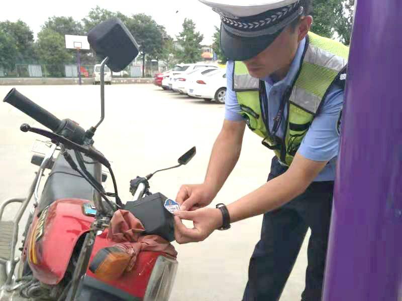 富平县交警大队,为了进一步加大辖区交通秩序整治力度,预防和减少道路交通事故的发生,针对辖区群众骑摩托车出行普遍不戴头盔这一情况和特点,结合夏季“防事故、严整治”专项行动,近日,富平交警大队创新工作思路,除开展执法检查与劝导教育而外,特意为辖区两轮机动摩托车贴上警示标识,提醒摩托车驾驶员佩戴安全头盔,自觉遵守交通安全法律法规,杜绝安全隐患,最大限度地遏制和防范摩托类交通事故的发生。