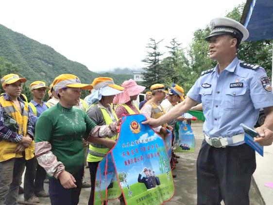 7月21日,凤县公安局交警大队副大队长高棋带领宣传警与中队民警,深入红花铺镇魏家湾村为正在展开加固防洪坝作业的施工人员和老年人进行交通安全宣传。宣教民警以通俗易懂的语言和老人们拉家常、话安全,得到了群众的热烈欢迎。