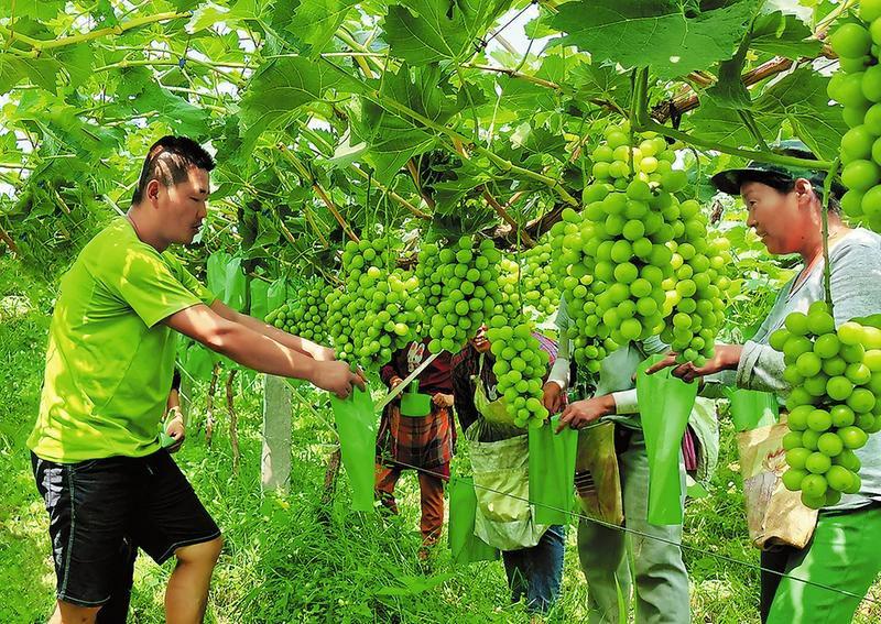 近日,在华阴市华西镇友谊村“阳光玫瑰”葡萄产业园里,农技人员正在为参加务工的群众讲解葡萄套袋的注意事项。据悉,友谊村“阳光玫瑰”葡萄产业园是华阴市实施“支书领富”工程的成功经验。园区采取“党支部+合作社+贫困户”的模式,通过效益分红、入园务工等形式,带动贫困户增收致富,确保了贫困户稳定脱贫。