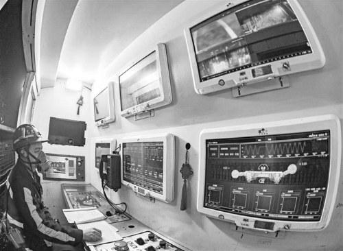近日,陕煤榆北煤业有限公司员工在远程操作122109智能综放工作面采煤机。今年上半年,该公司克服疫情带来的不利影响,及时复工复产,推出多项稳增长措施,全力释放产能动力,煤炭生产销售实现双增长。上半年,该公司实现营业收入47.43亿元,同比增收3.09亿元。