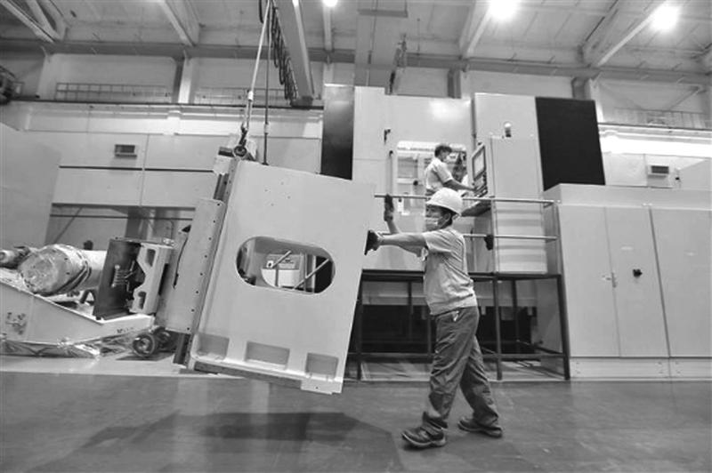 今年上半年,秦川集团坚持疫情防控和复工满产两手抓,集团归母净利润同比增长784%,成功实现扭亏,为企业下半年良性发展打下坚实基础。图为工人在吊运装配部件。