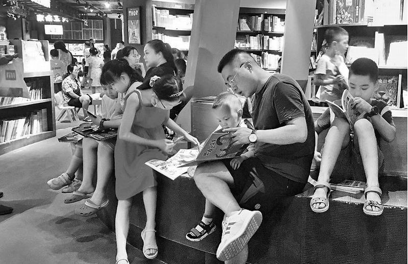 暑假期间,有很多学生来书店看书,也有不少家长带着孩子来到书店,选购喜爱的书籍,利用假期培养孩子的阅读兴趣,既充实了暑期生活又拓展了知识面。图为安市曲江书城阅读区座无虚席,不少读者在书城看书“充电”。