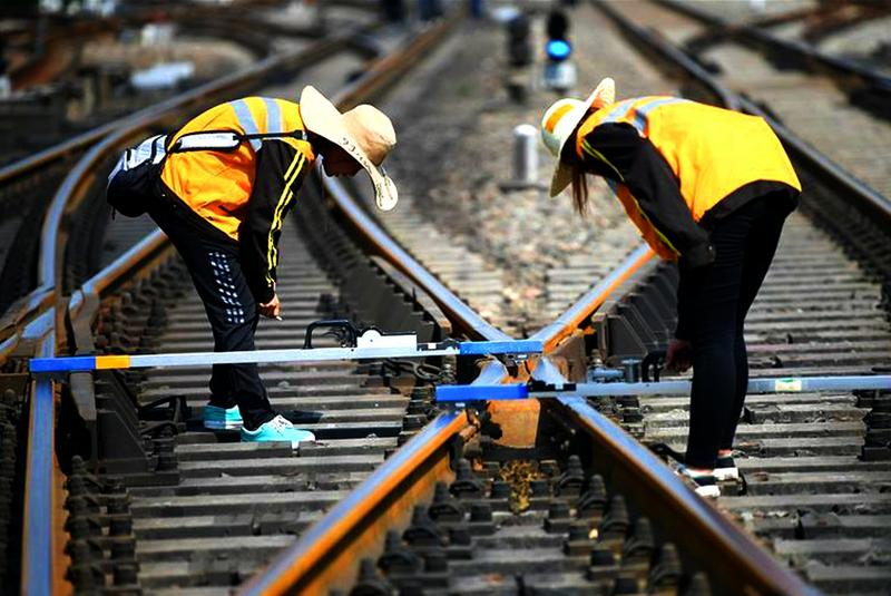 “女子检查组”的姑娘在咸阳车站进行作业。