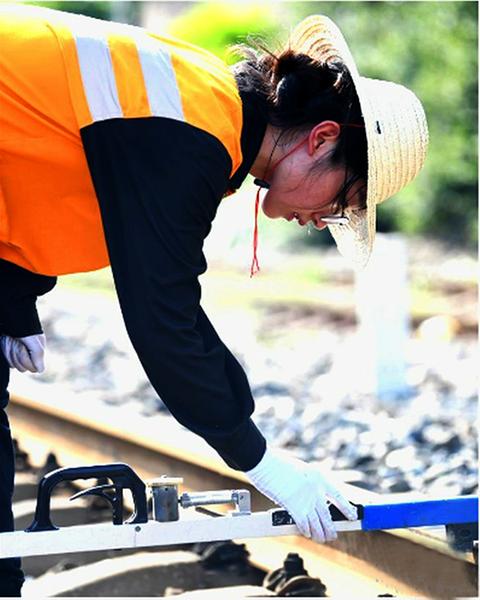 立秋甫过暑气未消。午后的骄阳下,一队身着黄衫的女孩手持检查锤、肩扛道尺、背挂防护包,踏上了泛着热浪的陇海铁路线。西安铁路局西安工务段咸阳线路车间检查工区“女子检查组”的这群姑娘,平均年龄24岁,负责着车间管内230余公里线路和370组道岔的设备检查任务。细致认真是“女子检查组”的特长,吃苦耐劳她们也不在话下。这些“黄玫瑰”不分四季地在铁路线上绽放,保障着线路的安全和旅客的平安。