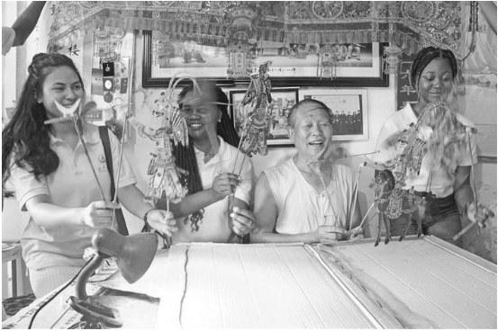 在华阴老腔发源地华阴市双泉村,皮影艺人向来自土库曼斯坦、尼日利亚、安哥拉、马达加斯加的留学生教授皮影表演技艺。图为长安大学留学生来到渭南市,参加“弘非遗文化讲中国故事”暑期社会实践。