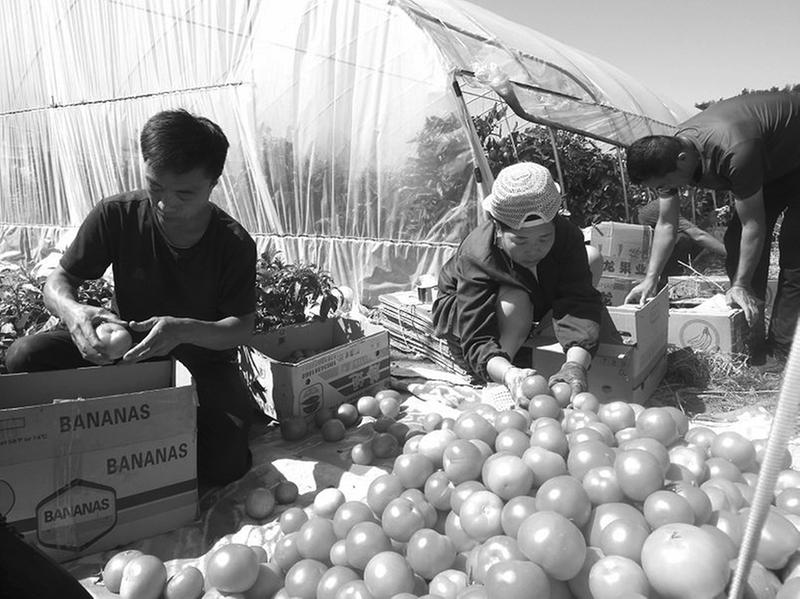 在郑家湾村拱棚种植基地,棚栽大户沈延斌也正带着5名工人在拱棚里面摘西红柿。“现在价格是一斤一块钱,这次大概能摘5吨左右,送到榆林绥德,已经摘了2天了,预计还得2天才能摘完,3个拱棚今年大概能收入4万元左右。”沈延斌一边采摘西红柿,一边喜滋滋地说。