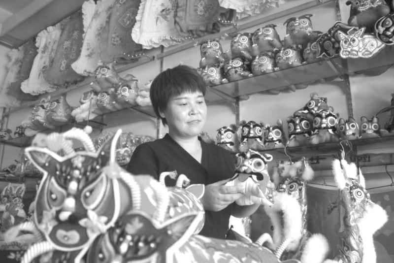为把凤翔刺绣的名气做得更响,王金平不断创新。从构思设计到制作成品,所有工序她都精益求精。目前,王金平正忙着为自己最新设计的一款名为“刺绣脸谱风捶背布老虎”申请外观专利。