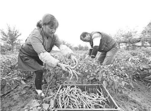 西安市灞桥区休闲农业产业联合体由农业龙头企业陕西麦草人商业运营有限公司牵头成立,规划面积500余亩,每年可向社会提供优质草莓、桃和樱桃及时令蔬菜500吨。图为务工群众在采摘辣椒。