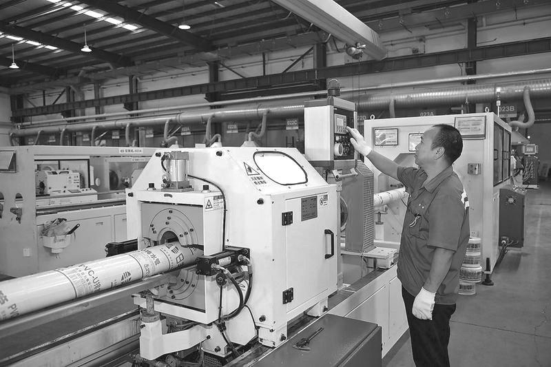 在渭南经开区的日丰企业(陕西)有限公司主要以生产PVC-U塑料产品——PVC-U管材、管件,PVC穿线管、穿线管件为主。今年上半年,企业借助生产线技术优势逆势而上,已实现生产总值1.34亿元,较去年同期增长16.49%,产品在覆盖西北市场的同时,还被分销到天津、湖北、广东等地市场。图为工人正在抓紧生产,赶制订单。