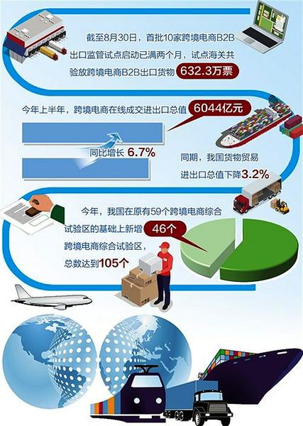 跨境电商是近年来我国外贸领域增长最快的新业态之一。与跨境电商B2C出口不同,跨境电商B2B出口是指境内企业通过跨境物流将货物运送至境外企业或海外仓,并通过跨境电商平台完成交易的贸易形式。截至8月30日,首批10家跨境电商B2B出口监管试点启动已满两个月,试点海关共验放跨境电商B2B出口货物632.3万票,受到了广大企业的欢迎。