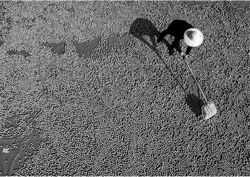 近日,在铜川市宜君县哭泉镇陕西益丰源农林科技有限责任公司核桃示范基地,当地群众抓紧有利时机收获核桃。近年来,宜君县积极发展核桃种植。据悉,该县今年栽种核桃达43.1万亩。图为农民正在晾晒核桃。