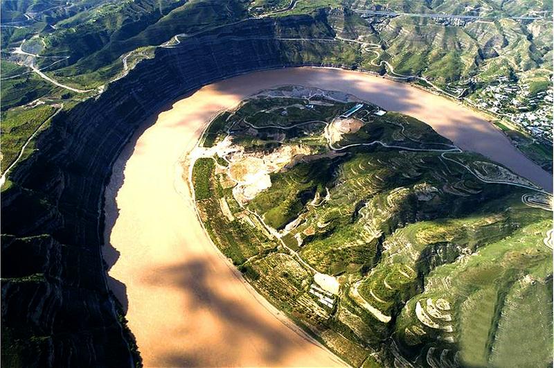 黄河晋陕大峡谷是黄河干流上最长的连续峡谷。在河套地区呈东西走向的黄河于此段急转为南北走向,从鄂尔多斯高原挟势南下,左带吕梁,右襟陕北,深切于黄土高原之中,其苍凉雄浑的峡谷风貌尽集于此。图为黄河盘龙湾景色。