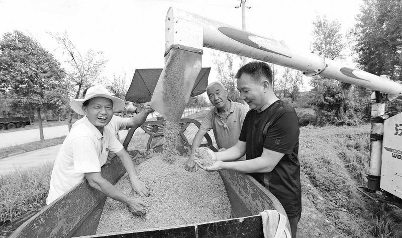眼下正是秋收季节,连日来,汉台区农业部门发动广大农户,抢抓晴好天气,积极开展水稻收割和稻谷晾晒,确保颗粒归仓。图为该区龙江办事处西郑营村村民在抢收水稻。