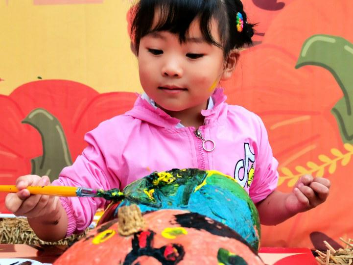 “庆丰收、迎小康”,农民节现场举行的亲自游戏南瓜涂鸦