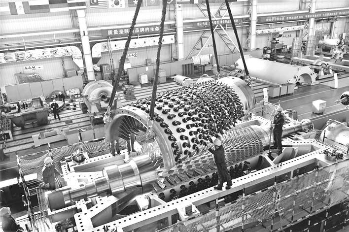 陕鼓研制的全球最大AV140轴流压缩机组总装现场。 陕鼓劲吹“中国风”。