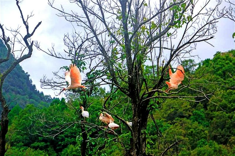 朱鹮对栖息环境十分挑剔,喜欢湿地、沼泽和水田。铜川是秦岭以北首个朱鹮野化放飞地。2019年8月,薛家寨景区完成生态修复项目后,原本干枯裸露的绣房沟河床流水潺潺。如今的薛家寨,植被茂密,绿树成荫,环境优美,森林覆盖率达75%以上,为朱鹮繁衍生息创造了良好的环境。