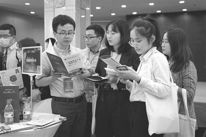 这是2020高端人才西安行活动的行程之一——博士人才精准对接交流会的现场。30余家西安重点单位与博士生进行交流对接。