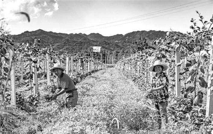 富水镇龙窝村千亩猕猴桃基地套种农业。 “这几年变化很大,家家户户都盖起了新楼房,水泥路通到家门口,还安装了太阳能路灯。一到晚上,到处亮堂堂,虽然是农村,但与城里人的生活差不多。”9月30日,商南县富水镇油坊岭村4组村民黄兴菊,一边坐在门前剥着玉米,一边和我们聊着天。在她的脚边,半笸箩金灿灿的玉米粒在秋日阳光照耀下,饱满而新鲜。