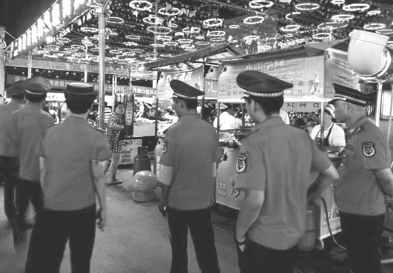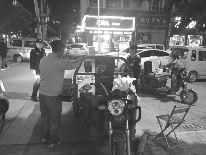 夜幕降临了,人们在工作结束后开始了另一种生活模式,有的在逛街,有的在聚餐,有的在购物,有的在娱乐……,而执法队员们依然在岗位上坚守,在管理和服务中奉献。