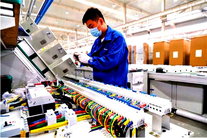 据悉,正泰智能电气西北产业园是正泰集团为响应国家西部大开发及“一带一路”发展战略,立足陕西,辐射欧亚,面向全球的重大战略举措。正泰集团主要生产中低压电力成套开关设备、变压器、箱变、隔离开关等产品。截至9月,该产业园产值达37.32亿元。图为技术工人正在生产线上作业。