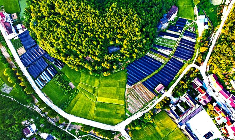 汉中南郑区以“扩茶、增烟、强渔、兴果、优菌、生猪”六大产业为主攻方向,2016年以来实施产业项目1455个,实现了短平快、中长线产业对产业扶贫户全覆盖。图为该区湘水镇湘水村香菇种植大棚鸟瞰。安思远 摄