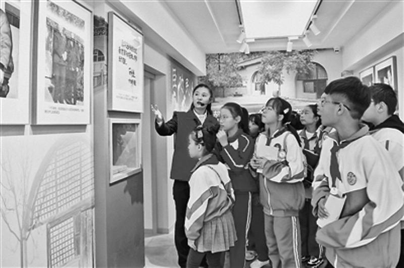 近日,绥德县教育和体育局组织全县2020年小学在读“十佳之星”到郝家桥参加研学旅活动,让学生进一步了解红色革命历史,传承红色文化,厚植爱国情怀。图为学生在郝家桥革命纪念馆聆听讲解员讲解红色革命历史。