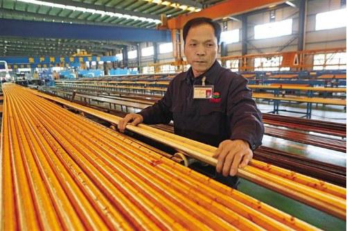 陕西迈纬尔胶管有限公司系陕西科隆新材料科技股份有限公司全资子公司,公司采用领先的工艺和配方技术生产高压液体输送和液体动力传送的主要部件,具有耐磨、耐腐蚀、坚韧等优点,产品广泛应用于煤矿机械、石油、工程机械等领域。图为工人在胶管车间包外胶。